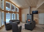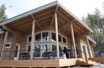 10 makuupaikan laadukas mökki, jossa on iso yhtenäinen keittiö-olohuone, 3 makuuhuonetta ja puulämmitteinen sauna. Mökissä on tilava katettu terassi.